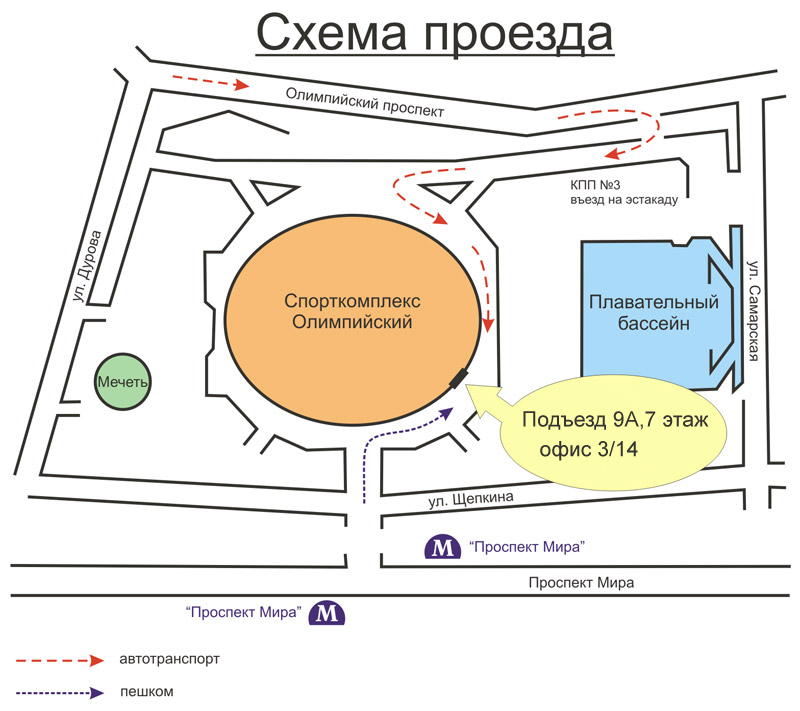 г. Москва, м. Проспект Мира, с/к Олимпийский, подъезд 9А,7 этаж, офис 3/14